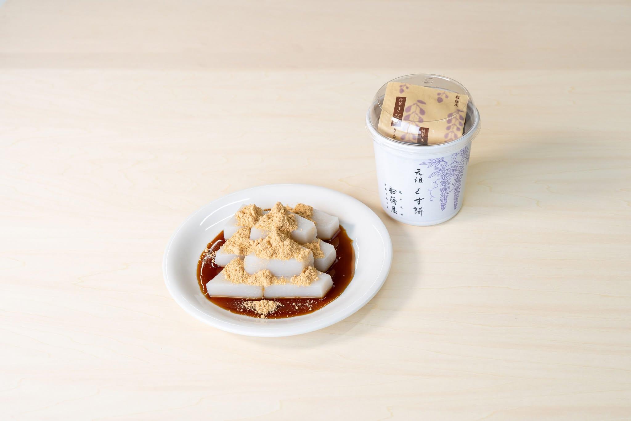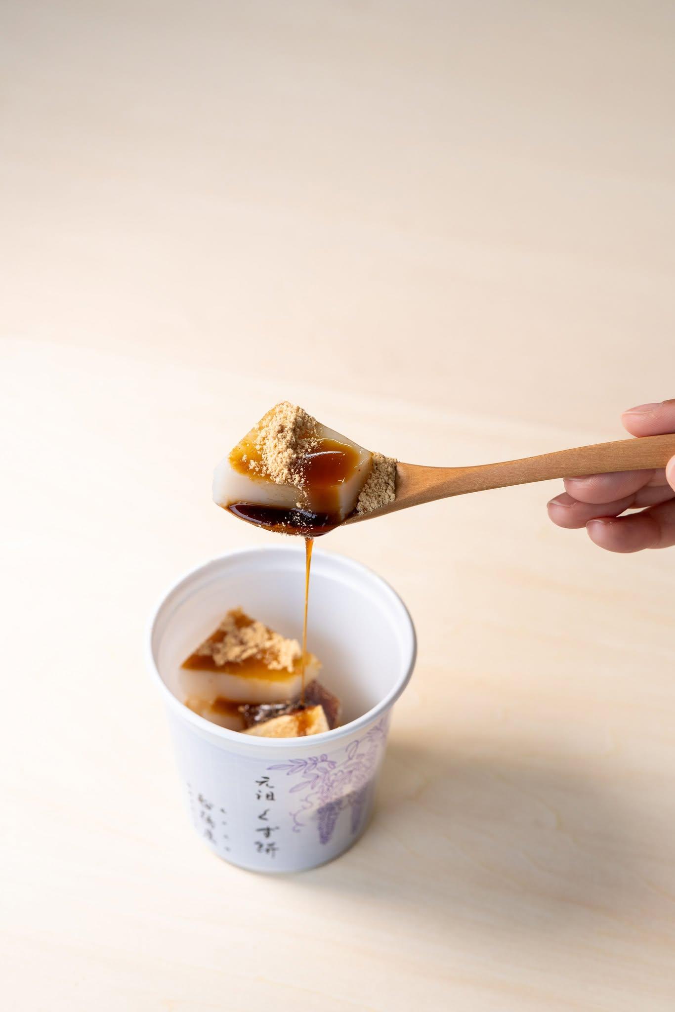 人気の元祖くず餅をお好きな時にお召し上がりいただけますよう、お持ち運びに便利なカップにお詰めいたしました。