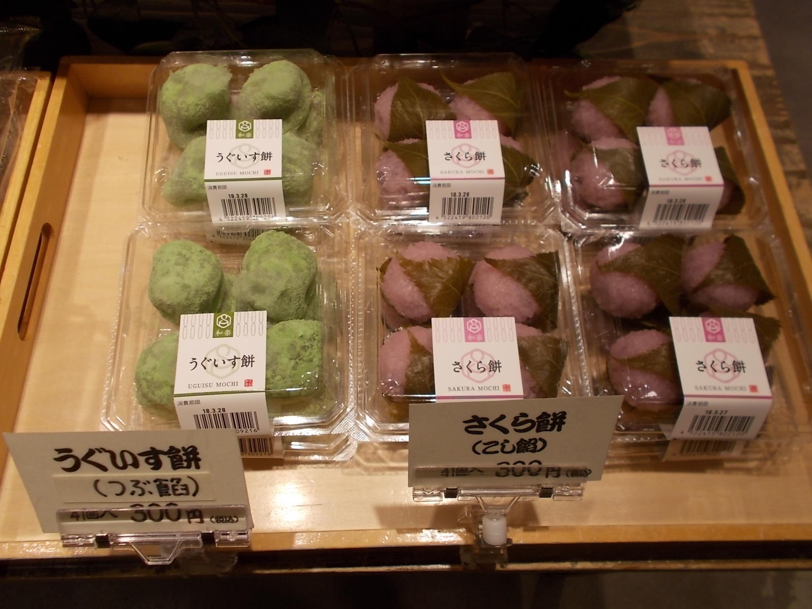 さくら餅(こし餡)、うぐいす餅(つぶ餡)各4個入300円(税込)入荷しました。