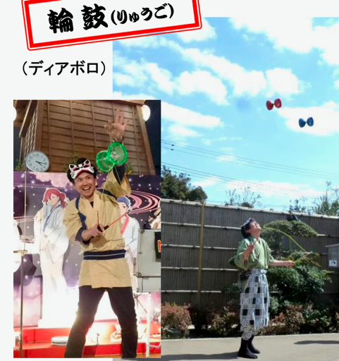 古くから輪鼓(りゅうご)と呼ばれてきたディアボロ(空中で廻す独楽)をご披露します。
