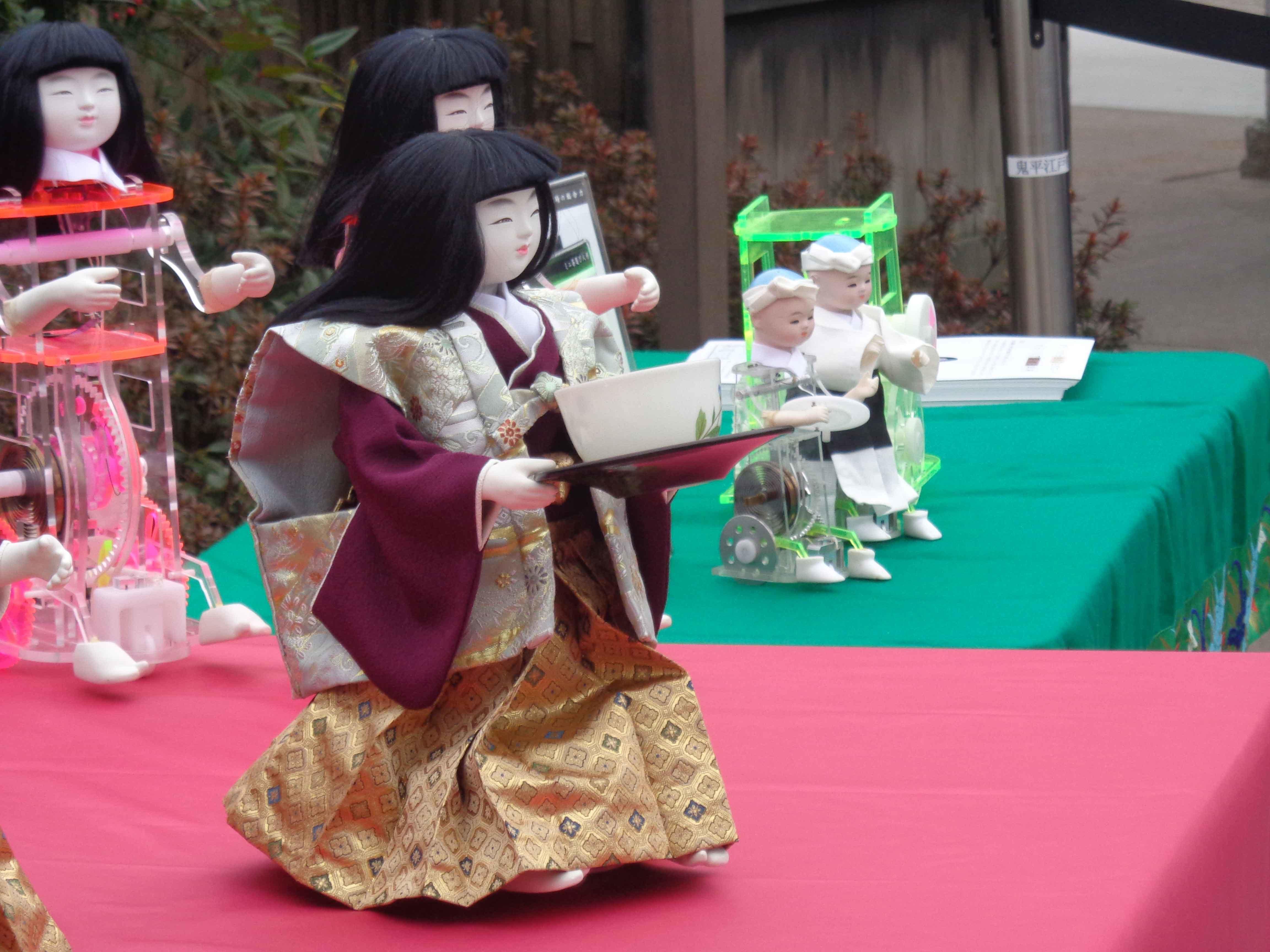 客人がお茶を飲み、湯のみを茶請けに置くと、Uターンして帰る仕組みの人形です。