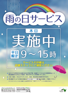 ※『雨の日サービス』実施日には、対象エリアにて本件ポスターが設置されます。 ※当日の天候が雪の場合にも実施いたします。