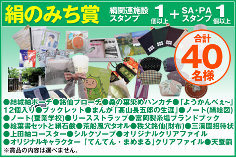 - ※プレミアム絹の道賞・絹の道賞・NEXCO東日本賞の賞品は選べません。