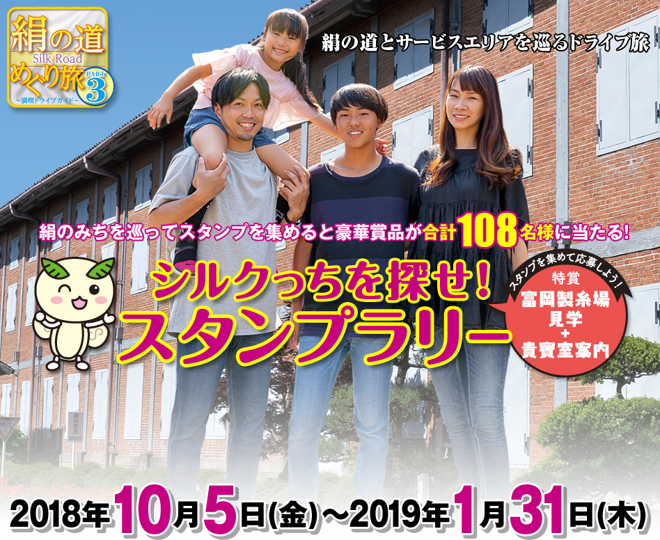 前回好評につき『絹の道ドライブガイドキャラクター シルクっちを探せ!スタンプラリー』再開催!!