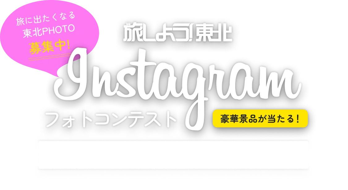 旅しよう!東北6県スマホスタンプラリーのスタンプスポットで撮影した「見た人が旅に出たくなる」写真を、スマホスタンプラリー公式Instagram(tohoku_stamprally)をフォローの上、ハッシュタグ「#旅しよう東北」をつけてインスタグラムに投稿してください。