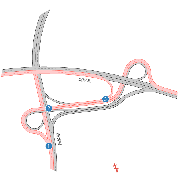 郡山JCTの標識マップ