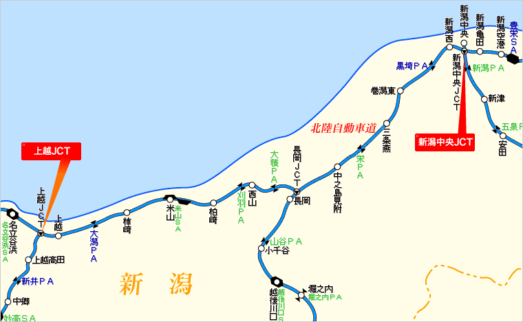 - NEXCO東日本新潟支社管内の高速道路のうち、特にお客様に注意して走行をお願い