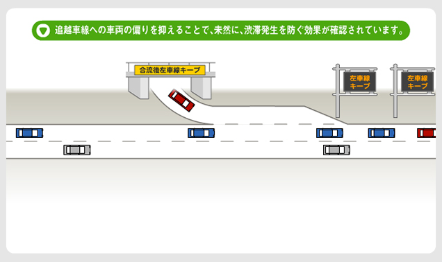 4.追越車線への車両の偏りを抑えることで、未然に、渋滞発生を防ぐ効果が確認されています