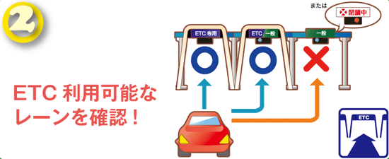 - 進入前にETC利用可能なレーンを確認(誤進入に注意)してください
