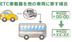 ※「普通車⇒普通車」、「軽自動車⇒軽自動車」等の同じ料金設定車種の車両に移す場合においても(2)により再セットアップ(登録)が必要です。