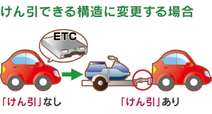 ETC車載器の取り付けられた車両をけん引できる構造に変更する場合