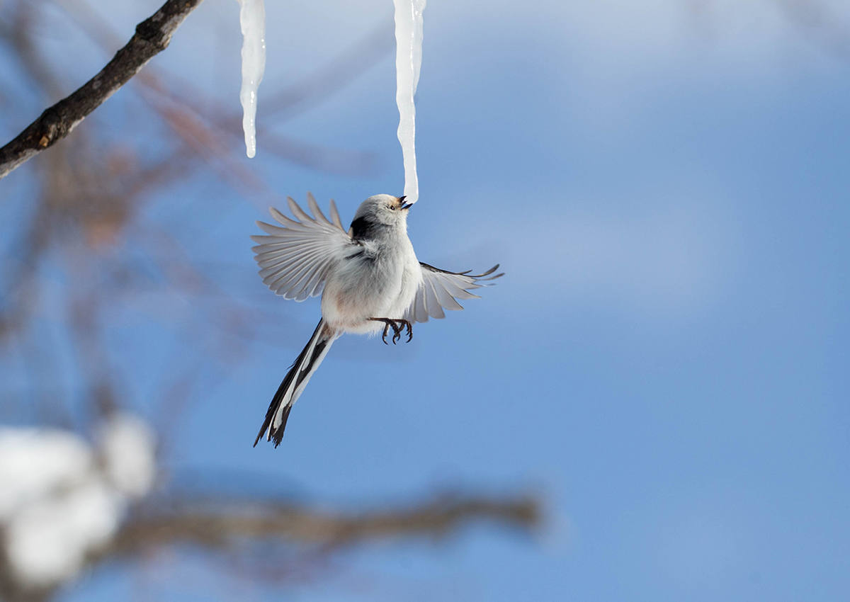 「北海道の四季」部門の受賞作は、どれも北海道の季節それぞれが持つ色彩や造形を繊細に切り取った秀作ぞろいですが、その中でむしろシンプルで、強い魅力を放ったのが「夏賞」を受賞した川崎絵梨さんの「ひまわりの笑顔」でした。技術的にはいたって素朴なスナップショットですが、多くの作品が客観性や芸術性に軸足をおいた「よそいき」の視点であるので、この作品の魅力は夏のある日の思い出や高揚感です。いわば、普段からの母と子の幸せな関係が、一枚の写真に表出していると言えます。こういったダイレクトな魅力は、「共通賞」を受賞した佐藤恵美子さんの「喉を潤す」にも共通です。壮大、幽玄な大自然の環境の中に、動物の生態や美を入れ込むという力作は多いのですが、枝と氷柱(つらら)のみで季節を伝えるストレートな表現が際立って見えました。