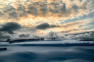「共通賞」である前田啓さんの『春を待つ耕地』は北海道らしい季節感、スケール感が魅力の作品です。美瑛という有名スポットを被写体としながらその美しさ、いわば地の利の記録にとどまらず、空を流れる重層的な雲の形と、大地に横たわる深い雪のうねりの、それぞれ違ったスピードをランデブーさせることにより、本来は目には見えない「風」が確かに画像に定着されています。