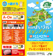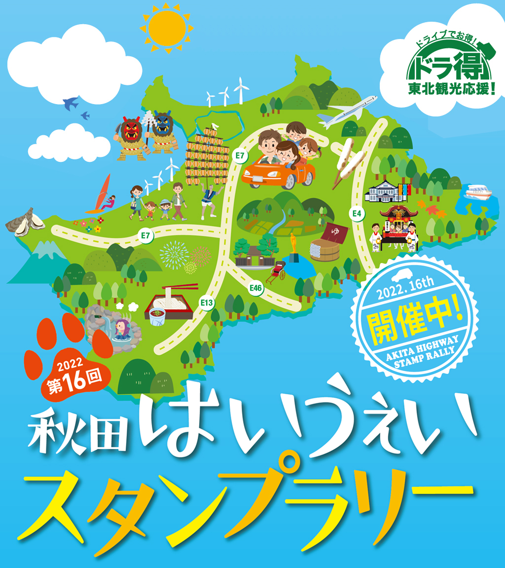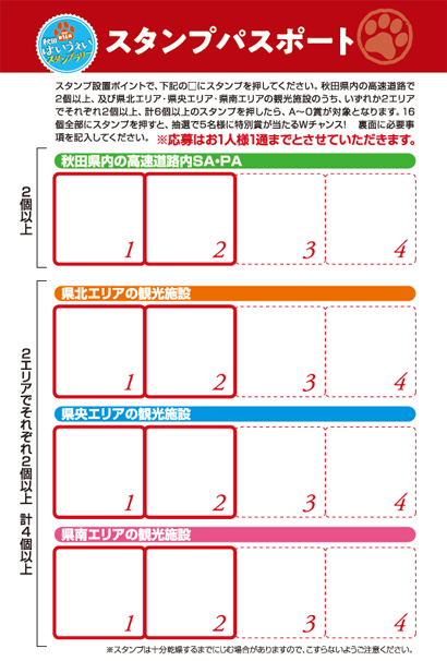 秋田県内の高速道路と県北・県央・県南エリアの観光施設のスタンプ設置ポイントでスタンプを集めてプレゼントを当てよう!