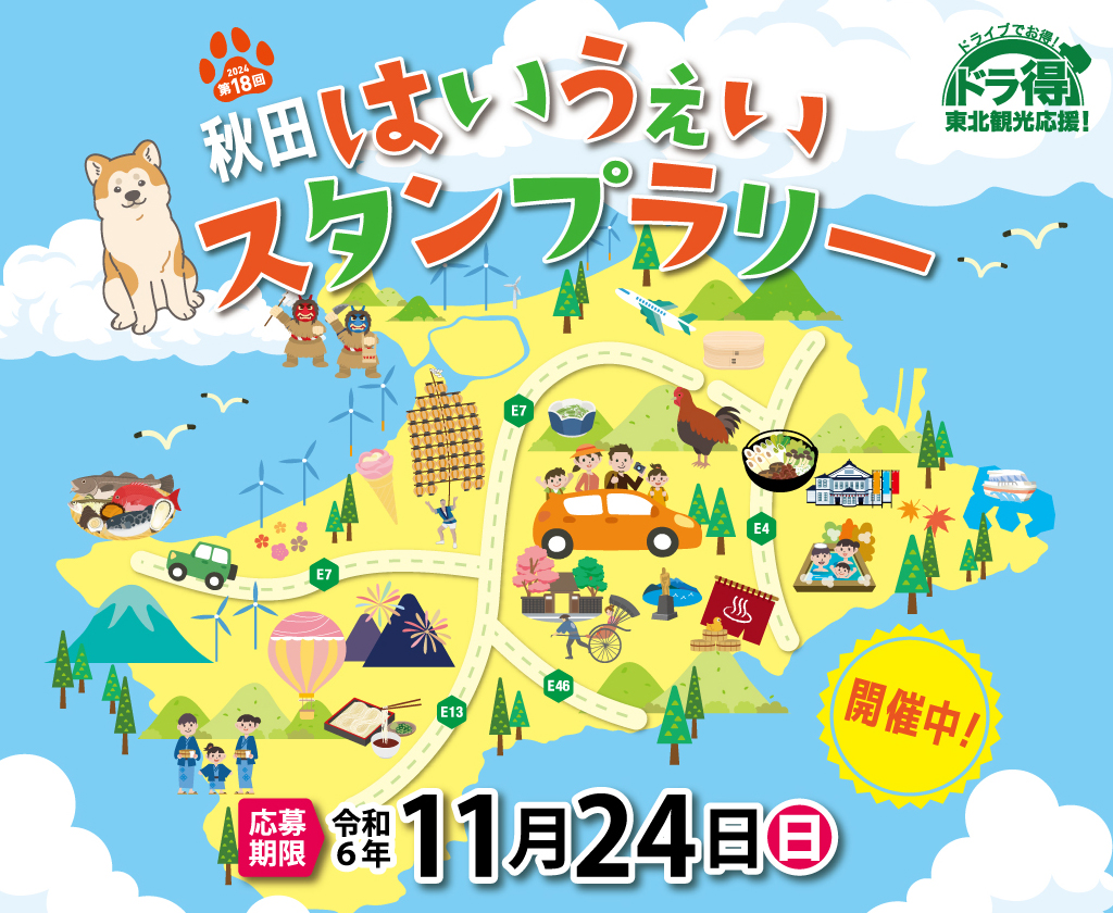 秋田県内の高速道路と県北・県央・県南エリアの観光施設のスタンプ設置ポイントでスタンプを集めてプレゼントを当てよう!