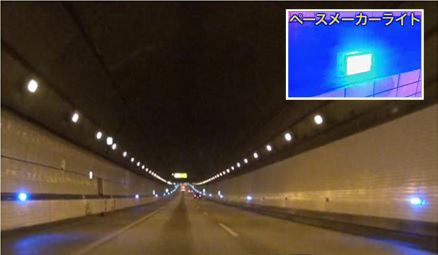 東京湾アクアライン上り線・海ほたるPAの先、浮島JCT付近に約1kmにわたって進行方向に向かって連続的に点滅する青いLEDライトが設置されています。
