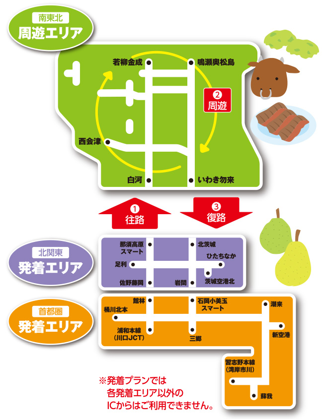 南東北周遊プラン、首都圏発着プラン、北関東発着プランの3種類をご用意しております。ご利用方法や対象エリアなどの詳細はそれぞれのページをご覧ください。