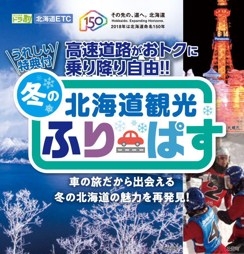 - ご利用日(申し込み後)に一度でも走行があった場合は、「冬の北海道観光ふりーぱす」の料金となりますので、ご出発前に天候と高速道路の交通情報をお確かめください。ご走行前であれば取消は可能です。取消の際、ログインできない場合は、NEXCO東日本お客さまセンターまでお知らせください。