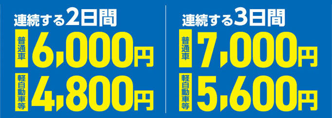 - ご利用区間・時間帯によっては、通常のETC割引(休日割引・深夜割引)をご利用いただくほうがお安くなる場合がございます。ETC割引について詳しくは下記のページをご覧ください。