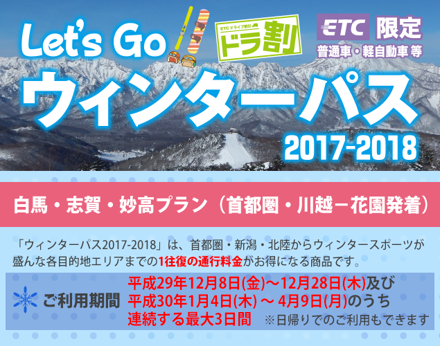 「E-NEXCO pass」で「ウィンターパス 2017-2018」をお申し込みされたお客さまにE-NEXCOポイント50ポイントをプレゼント!