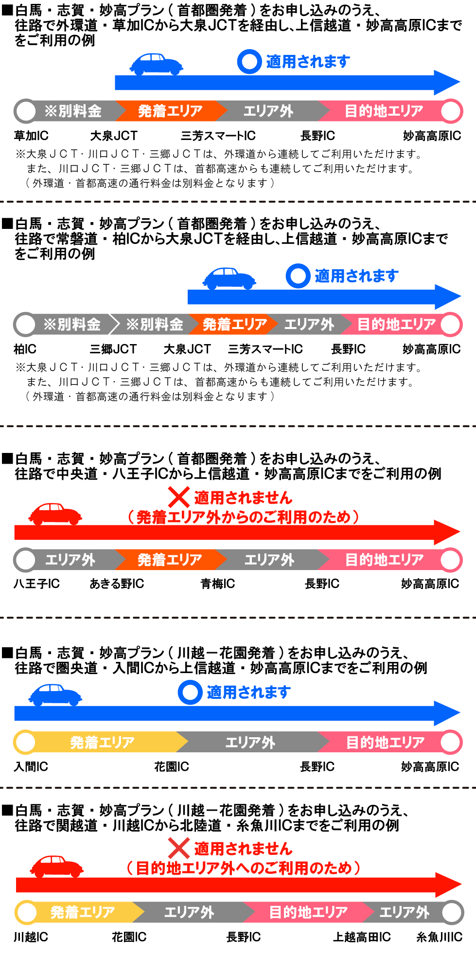「白馬・志賀・妙高プラン(首都圏発着)」の走行例(普通車)