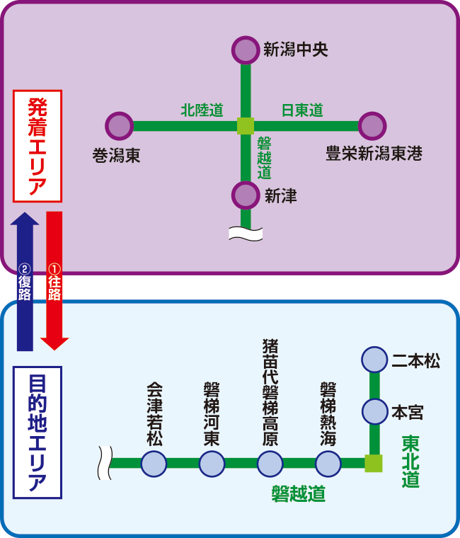 「猪苗代・磐梯プラン(新潟発着)」の走行例(普通車)