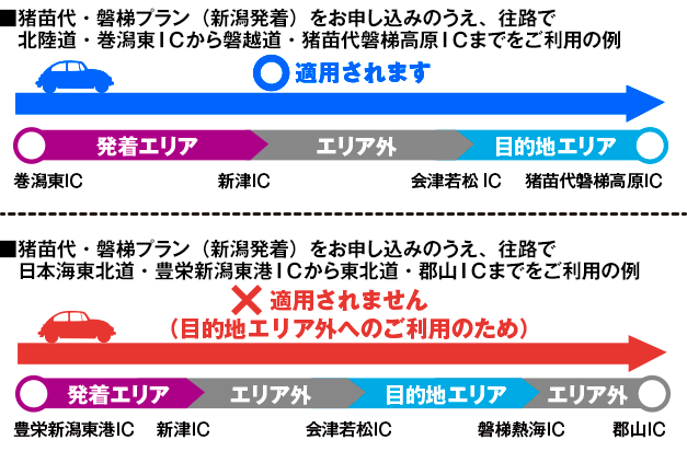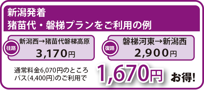 【往路】新潟西IC → 猪苗代磐梯高原IC 3,170円(ETC通常料金) ⇒ 本商品適用後、