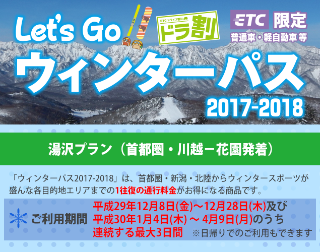 「E-NEXCO pass」で「ウィンターパス 2017-2018」をお申し込みされたお客さまにE-NEXCOポイント50ポイントをプレゼント!