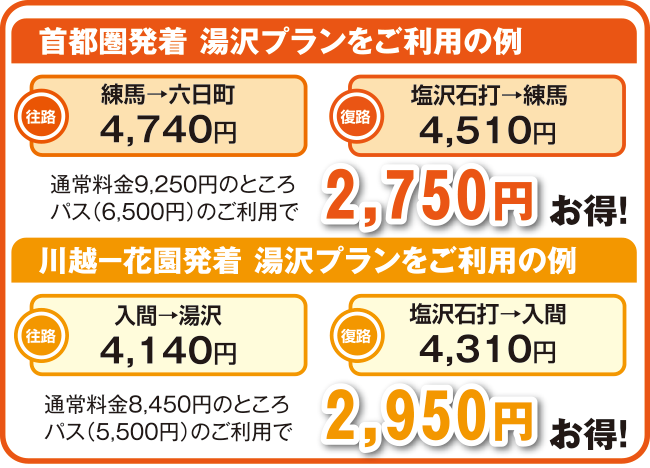 【往路】あきる野IC → 塩沢石打IC 4,800円(ETC通常料金) ⇒ 本商品適用後、