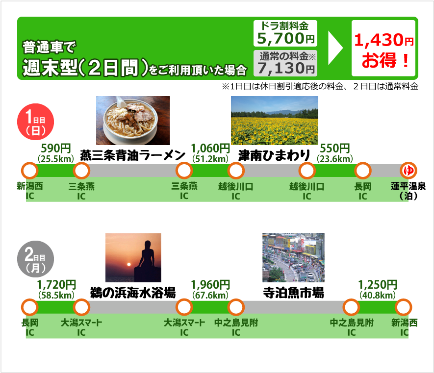 - 本商品が適用されたご走行は、平日朝夕割引の対象外となります。