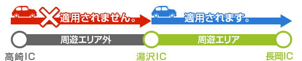 周遊エリア内のIC間のご利用に限り、本商品が適用されます。
