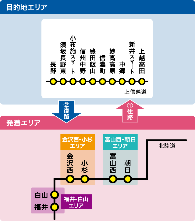 「白馬・志賀・妙高プラン(金沢西-小杉発着)」のご注意いただきたい走行例(普通車)