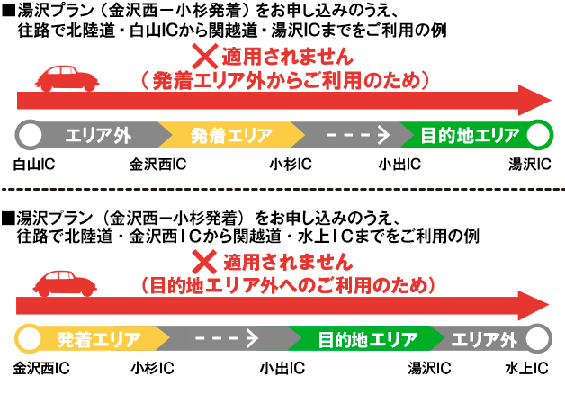 「湯沢プラン(金沢西-小杉発着)」のご注意いただきたい走行例(普通車)