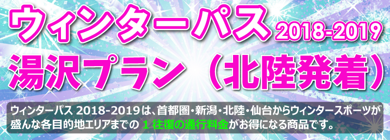 ●ご利用区間・曜日・時間帯によっては、「ウィンターパス 2018-2019」をご利用いただくと割高となる場合がございます。通行料金については、高速料金・ルート検索にてご確認ください。