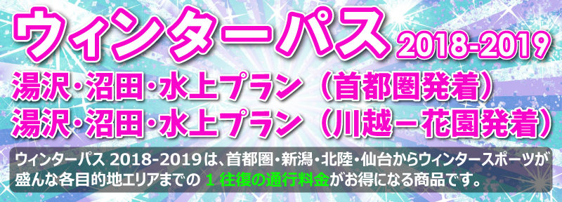 ●ご利用区間・曜日・時間帯によっては、「ウィンターパス 2018-2019」をご利用いただくと割高となる場合がございます。通行料金については、高速料金・ルート検索にてご確認ください。