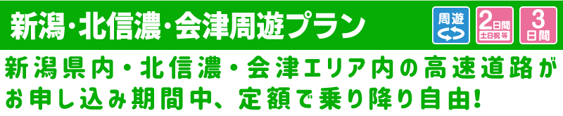 対象エリア外の料金は、「新潟観光ドライブパス」の料金とは別途、通常の料金(ETC時間帯割引が適用される場合、ETC時間帯割引適用後の料金)をETCカードにより決済いたします。