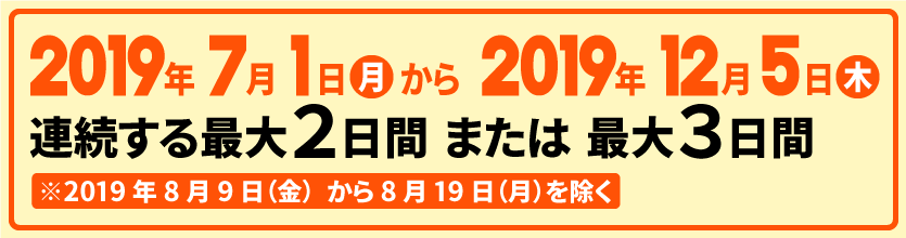 ・黄色着色は最大2日間、ピンク着色は当日のみでのご利用となります。