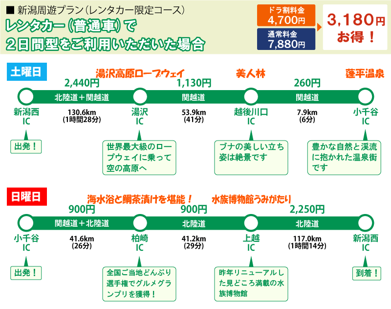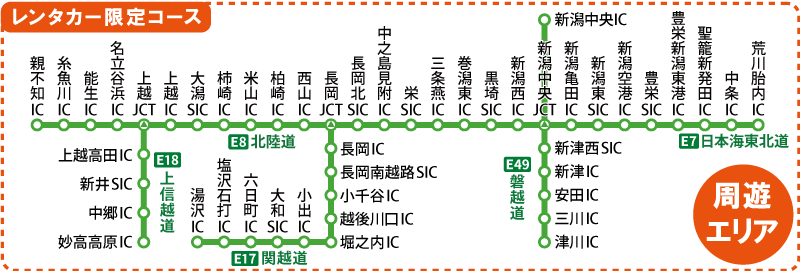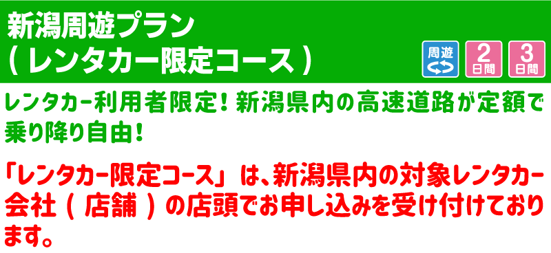 ※申込期間中、レンタカー店から貸与を受けたETCカードを使用して本商品の周遊エリア外を走行された場合、ETCカード返却の際に周遊エリア外の通行料金を別途お支払していただきます