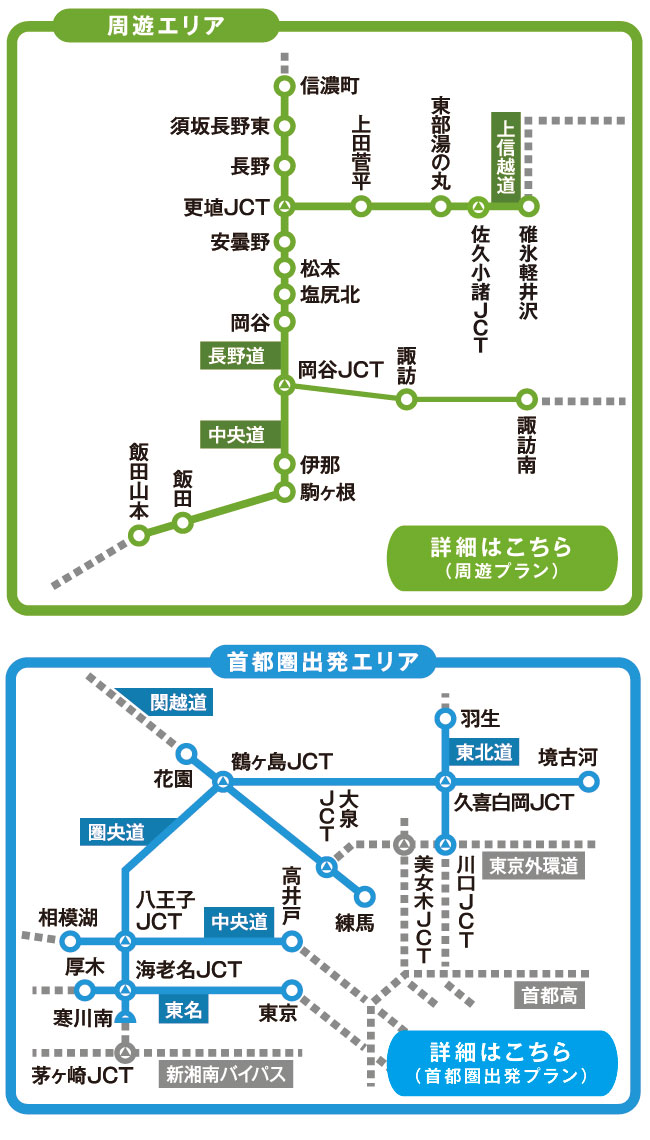 首都圏出発エリアを発着地として、長野県内を周遊されるお客さま向けのプランです。