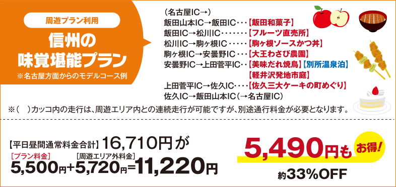 - ●周遊エリアを超えたご利用(信濃町ICから新潟方面など)をされた場合は、ドラ割料金とは別途、周遊エリア外料金として通常の料金(ETC時間帯割引が適用される場合は、ETC時間帯割引適用後の料金)をお支払いいただきますのでご注意ください。