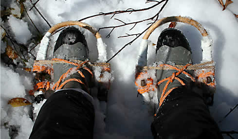 まずは長靴を履いて雪駄を装着。腰にはタヌキの毛皮を巻く。