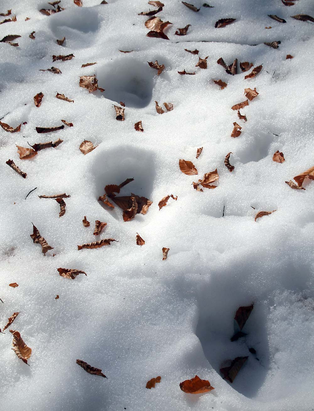 しかも、今度は登りも下りもあって、僕との距離は開くばかり。こうして何度か姿を見失いそうになりながら、冒頭に記したように、「熊の足跡を追う舟山さんの足跡」を辿ることになったのだ。