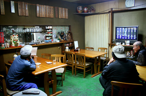 まるふじ食堂に食器を帰しに良くと、昭和の雰囲気を色濃く残す店内で常連さん達がくつろいでいた。