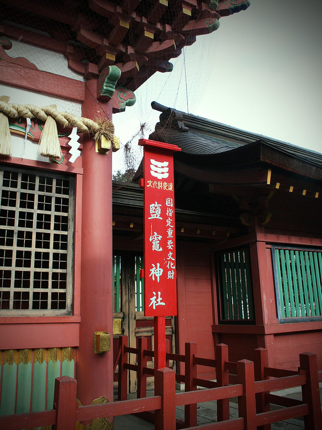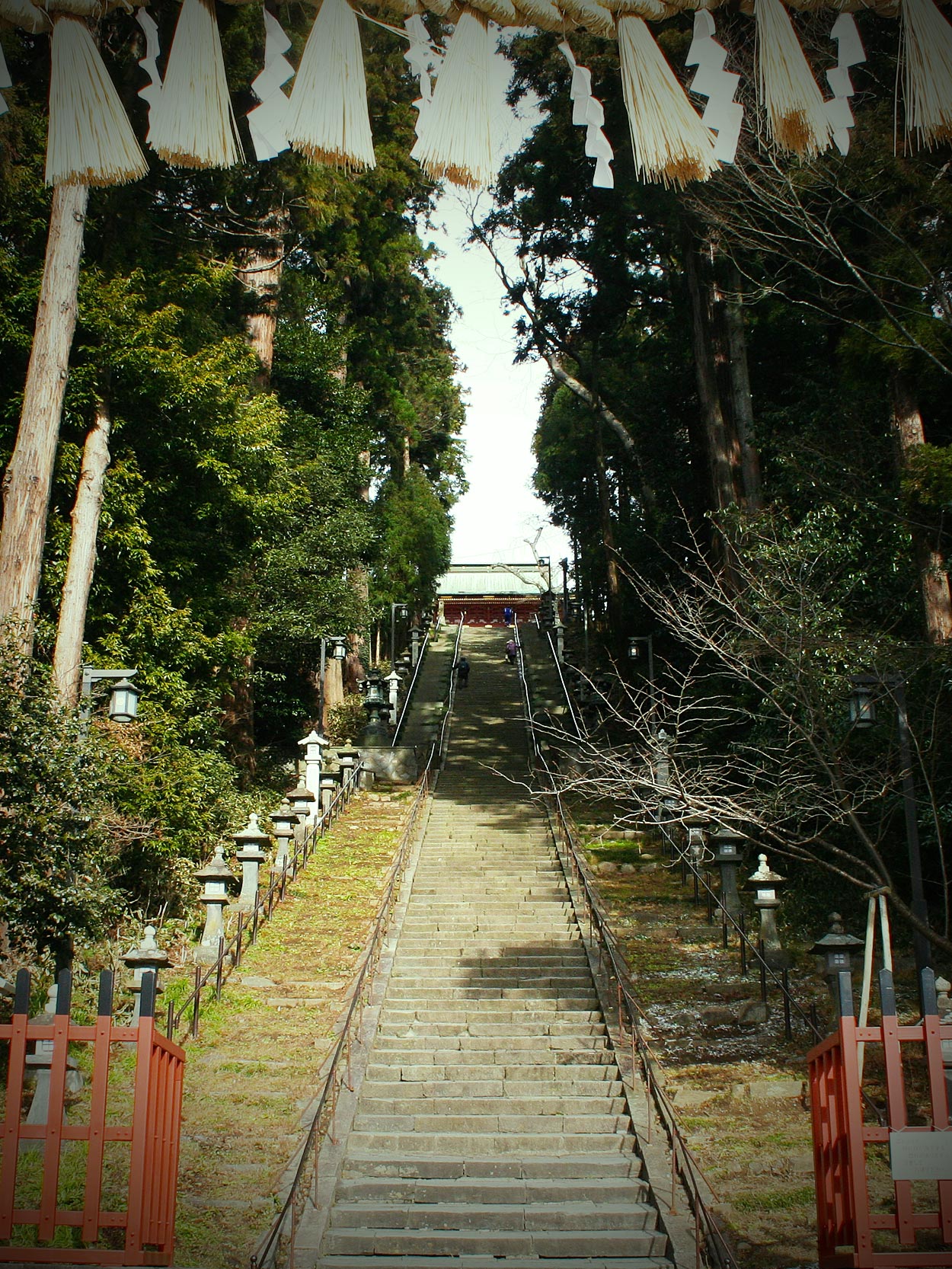 塩釜駅から歩くこと数分、石の鳥居の奥に、長い参道が現れた。