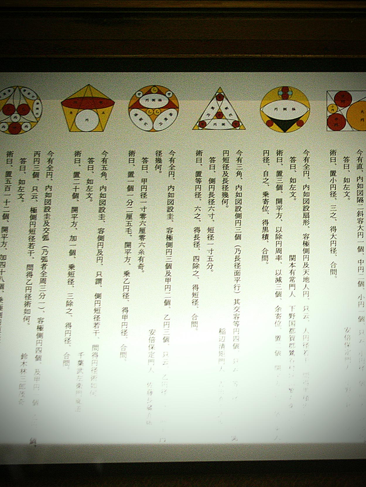 それにしても、この博物館の中においては、算額はどちらかといえばマイナーな展示物の印象だ。もう今や、和算に興味を持つ人は多くはないのかもしれない(この日も、算額を見学しているのは私だけだった)。