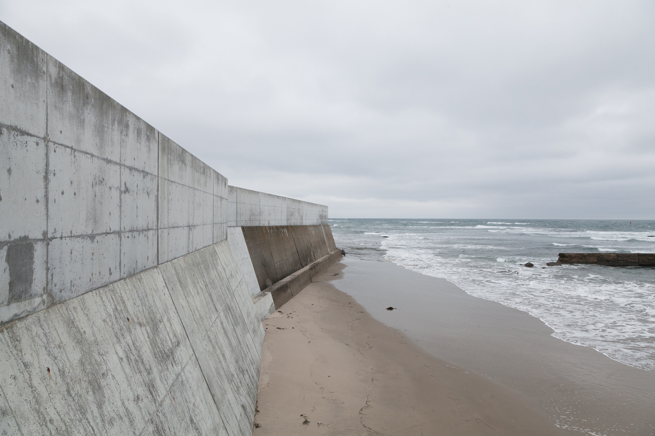 塩屋崎灯台を挟んで豊間海岸と薄磯海岸があるのだが、いわき湯本ICを降りて車を走らせると、灯台の手前に、まず豊間海岸が見えてきた。幼い頃、海水浴に訪れたこともある豊間海岸は、津波で大きな被害があり、たくさんの人が亡くなったところだ。景色はすっかり変わり、防潮堤が建設され、まだまだ海の近くでは大規模な工事がなされていた。