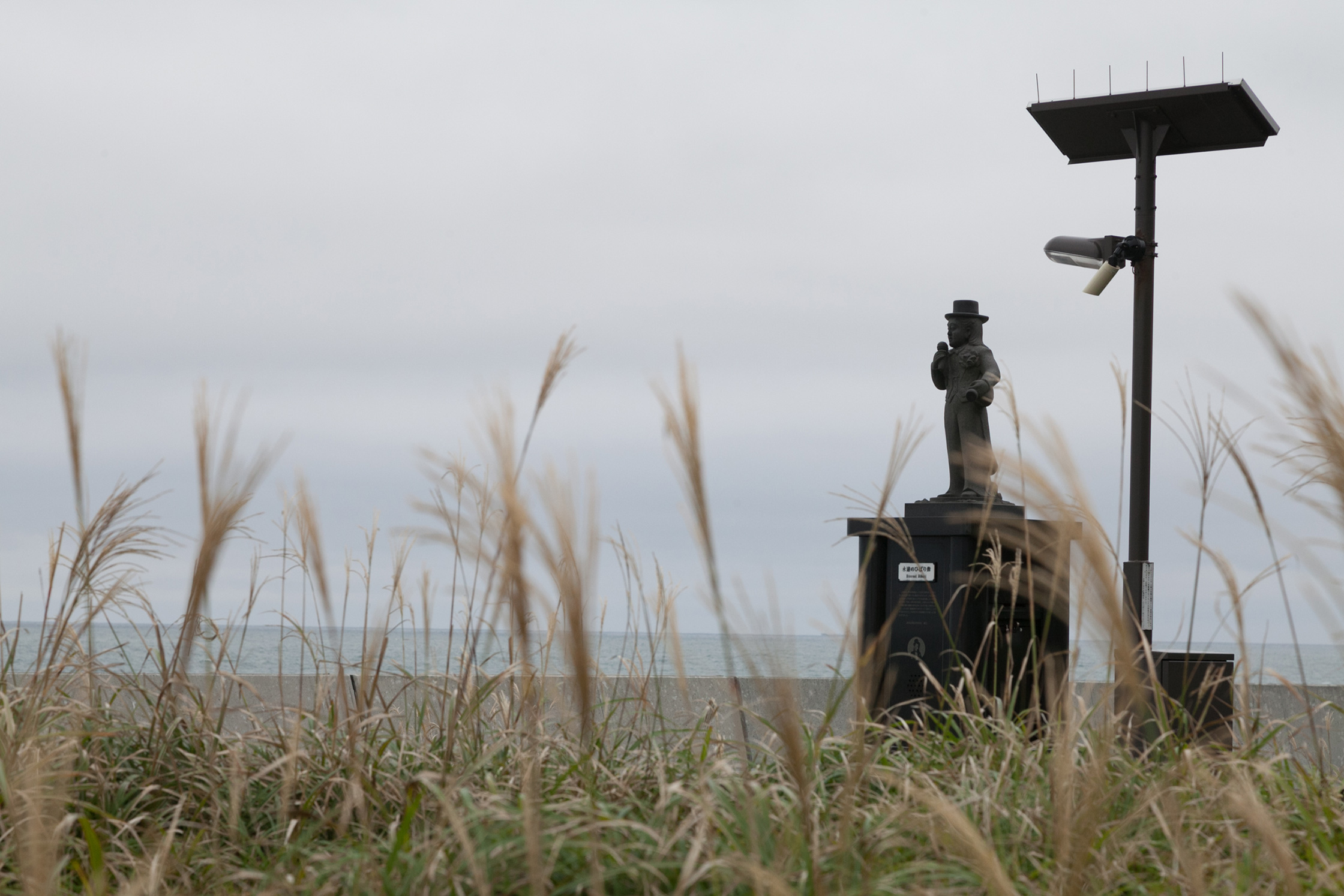 何度試しても歌わないひばりの像と、今にも雨が降り出しそうな夕方の薄磯海岸を見渡して、なるほどなあ、と思った。残念だけど天気ばかりは仕方ない。帽子をかぶってステッキを持っているひばりちゃんの像は、おそらく少女時代の姿なんだろう。静かな海辺にひとりできりでいるのは、ちょっとかわいそうな気もする。