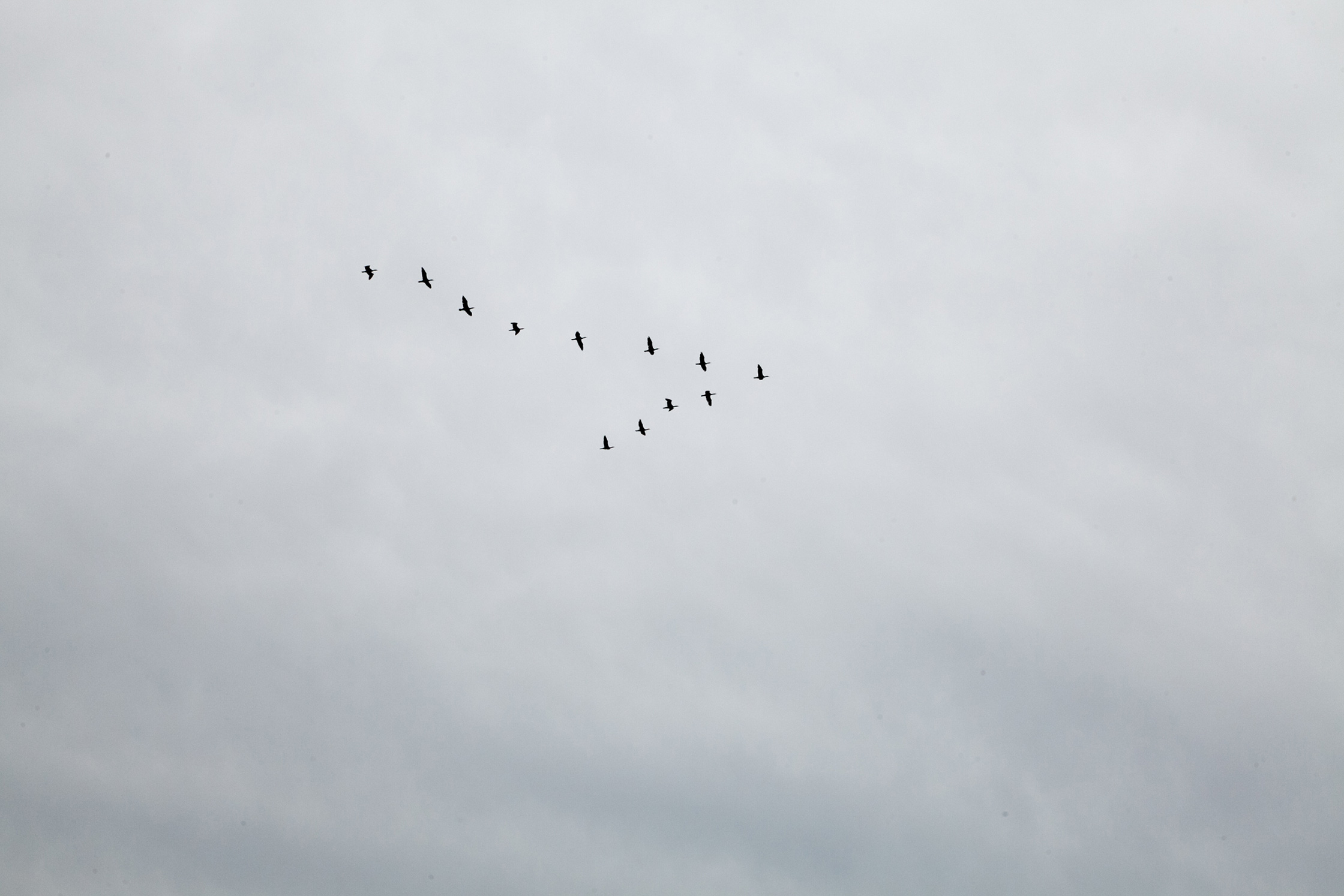 タイヤを枕にして、砂浜に寝転んでみる。見上げると、鳥の海の方から鳥の群れがVの字になって飛んでくる。目をつぶると波の音に混じって、防潮堤の向こうでショベルカーが休まずに動く音が、かすかに聞こえて来る。