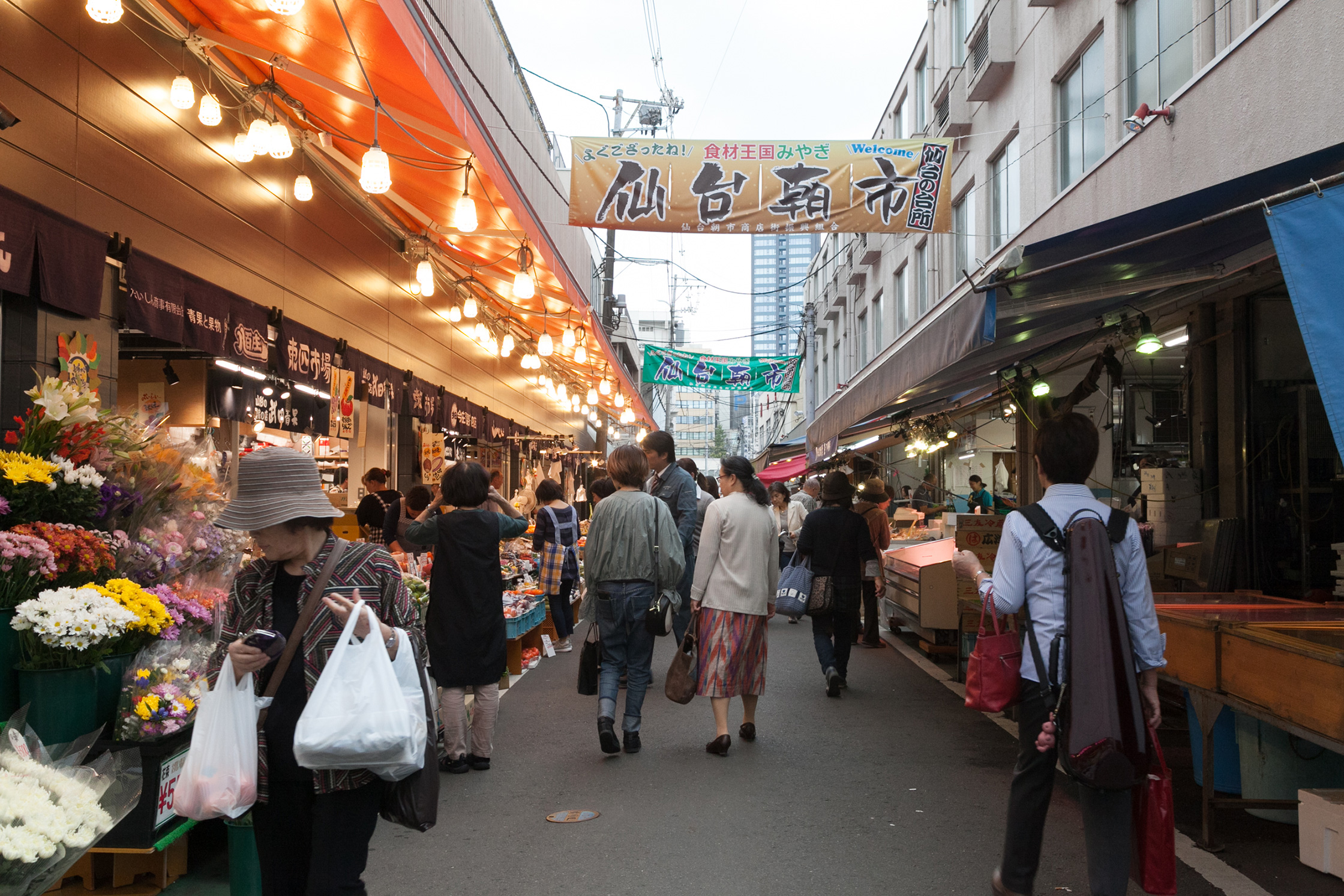駅の近くの有名な「朝市」の通りにも行ってみた。朝市とはいうけれど夕方までやっている、仙台の台所のような場所であり、街の人から観光客まで、いつもたくさんの人で賑わっている。私も何回か行ったことがあるけれど、震災後には訪れていなかったので、久しぶりに通ってみることにした。