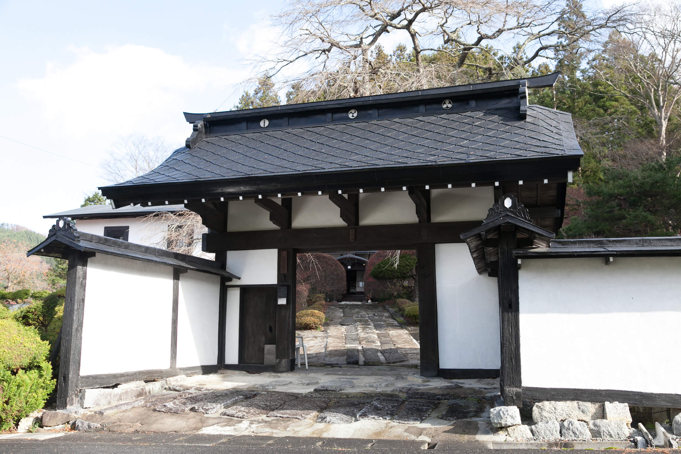 目指すは町の中心にある人首城跡に通じる坂の一角にある、古いお屋敷だ。まるでお城のような門をくぐると、樹齢250年を越すという大きな山桜、築山のある庭、二つの蔵、そしてタイムスリップしたような武家屋敷風の家がそびえ立っている。それもそのはず、この佐伯家は仙台藩人首城主沼辺氏の家老だった家柄で、主屋は110年前に建て替えられ、庭は江戸時代中期からあるというから驚きだ。