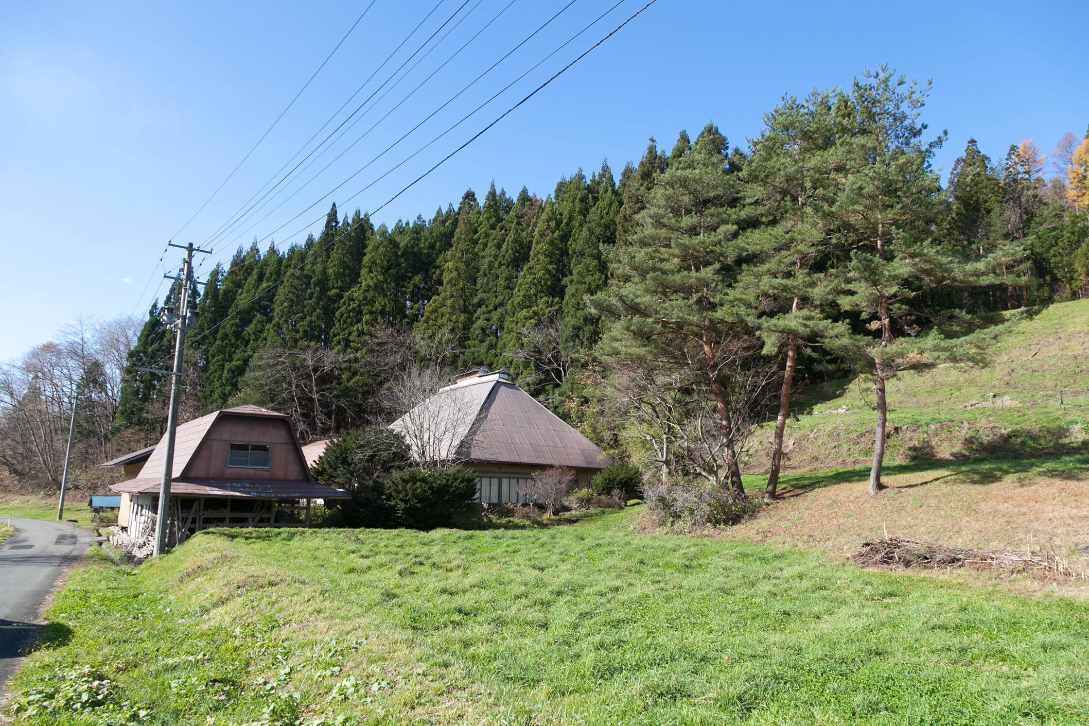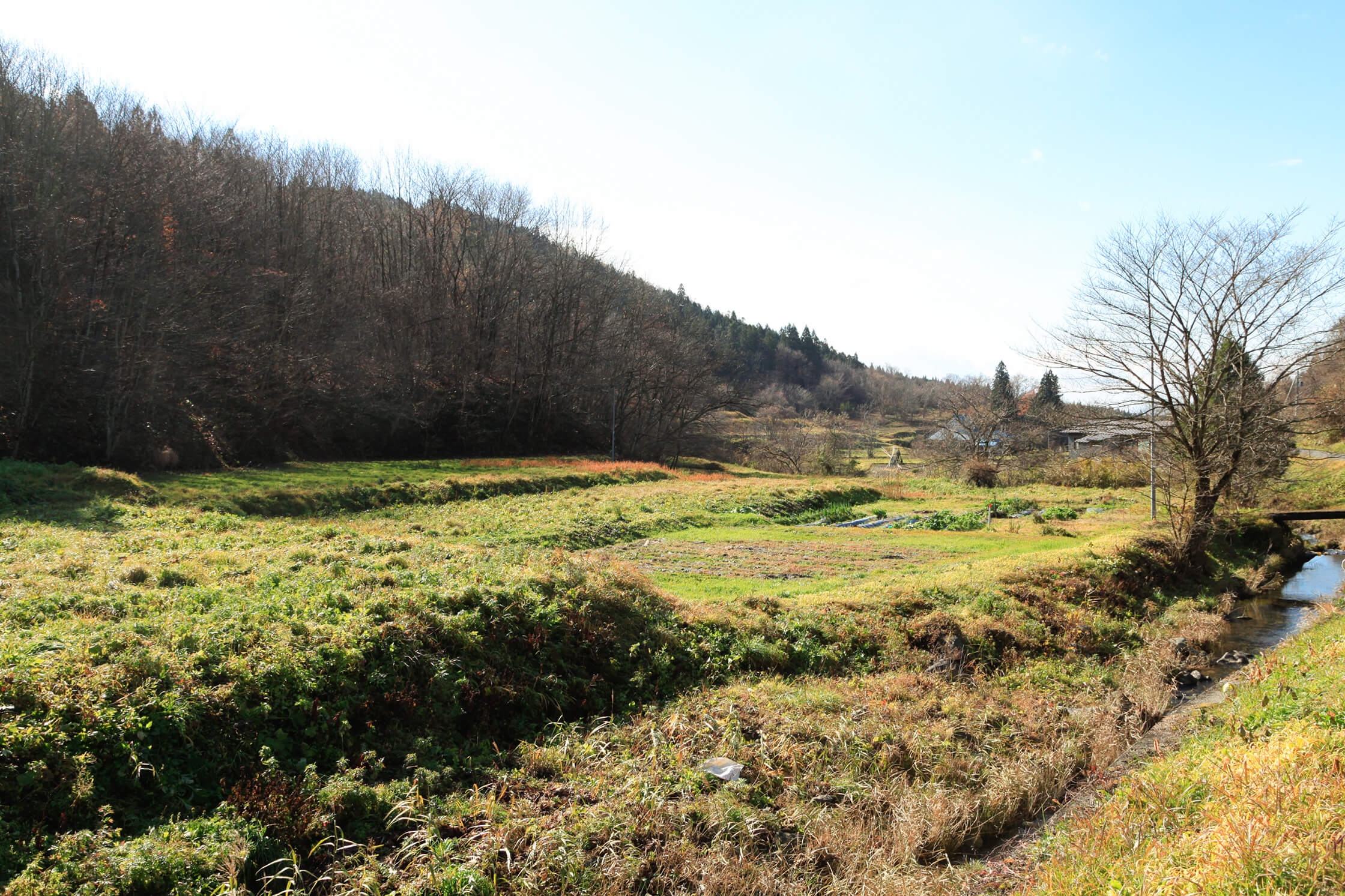 上大内沢という集落に入ると、手入れされた畑や牧草地の合い間に、古い家がポツリポツリと見えてくる。どの家も、この地方独特の、まるでお寺のように大きな屋根と、母屋の手前に家畜小屋がある作りの立派な家屋が並ぶ。このあたりが、2度目の人首の旅で書かれた詩「丘陵地を過ぎる」の風景ではないか、とされている。その一節はこうだ。